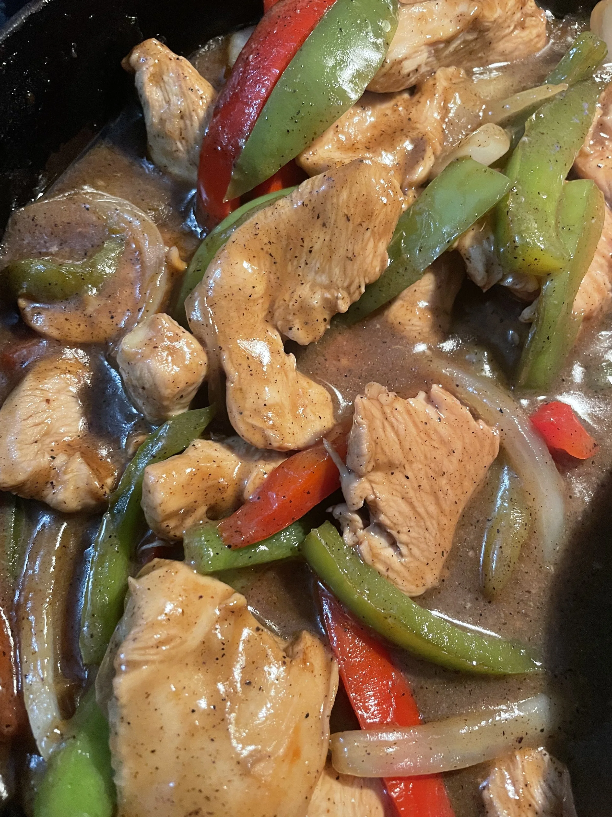 An easy black pepper chicken with juicy tender chicken, crisp vegetables and a rich savory black pepper sauce. It takes no time to put together and tastes better than your usual Chinese restaurant takeout!