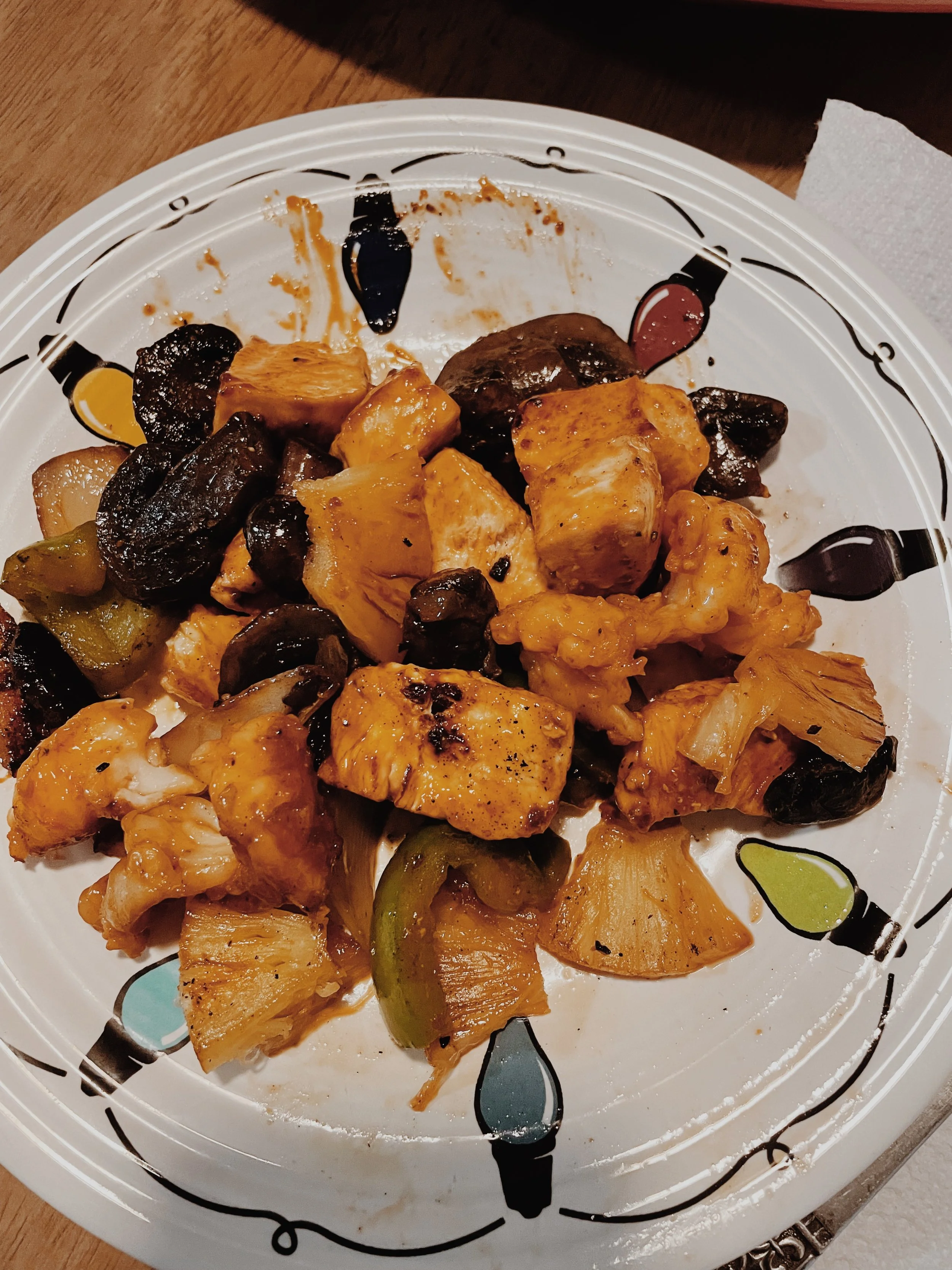 Polynesian Chicken with pineapple, mushrooms, and onions